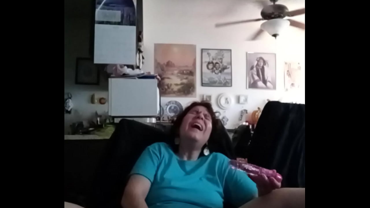 Une femme mature se filme en train de se faire plaisir avec son nouveau dildo. ses gemissements et son excitation sont palpables dans ce film porno amateur tourne dans son salon.